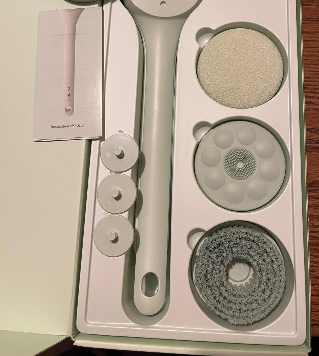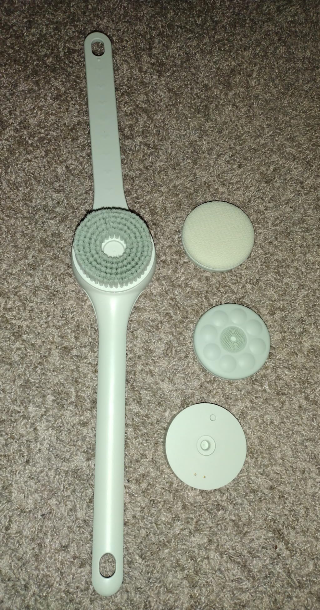 After workouts, I use this brush to massage my shoulders and back. It really helps relax tight muscles while also cleaning my skin. The different brush heads are a huge plus.